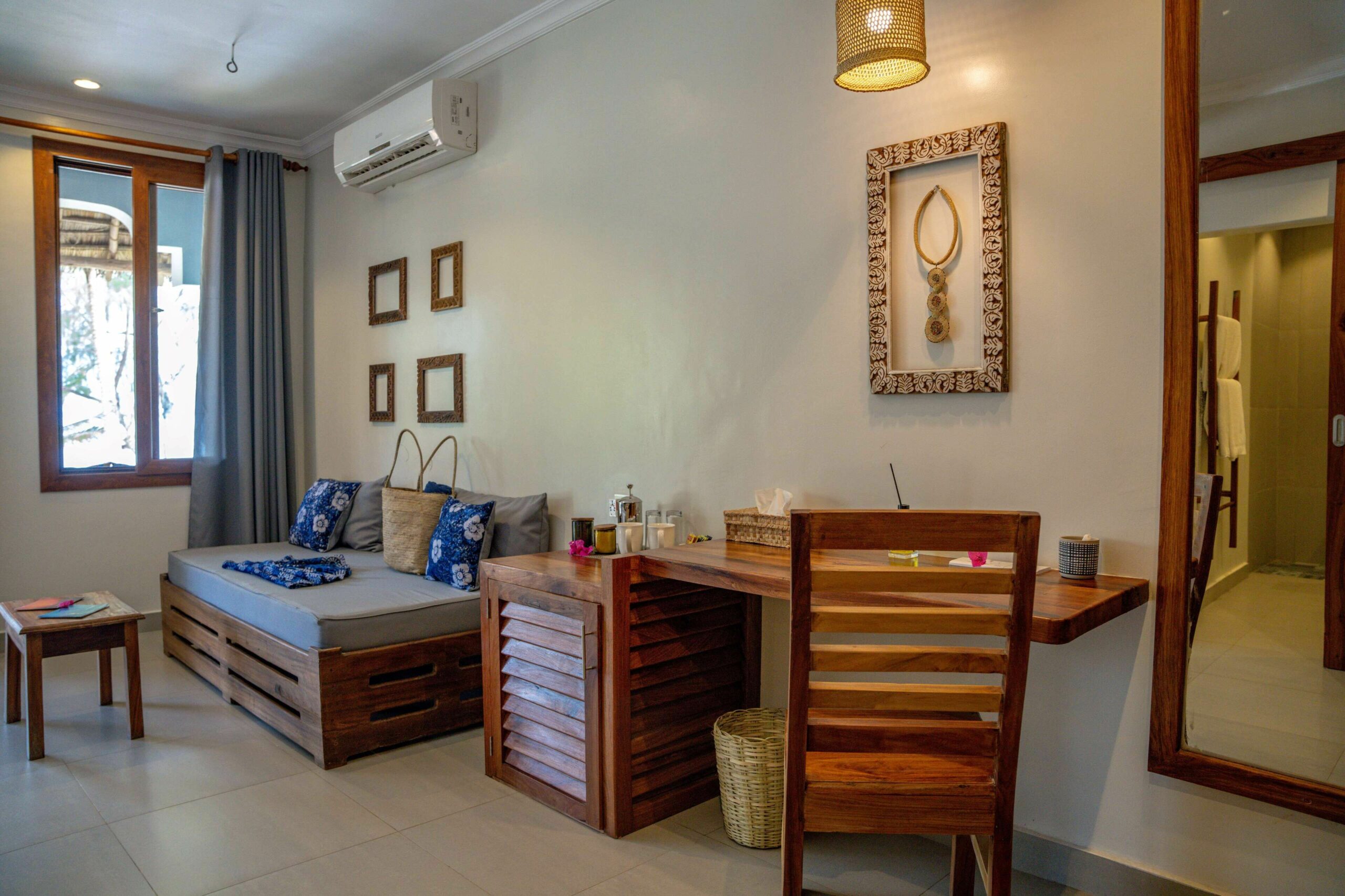 Avec vingt chambres, l’établissement offre une atmosphère confidentielle, loin de l’agitation des grands hôtels de l’île. Les espaces extérieurs, que ce soit la plage, la piscine ou les jardins sont agencés afin de préserver l’intimité et la tranquillité.