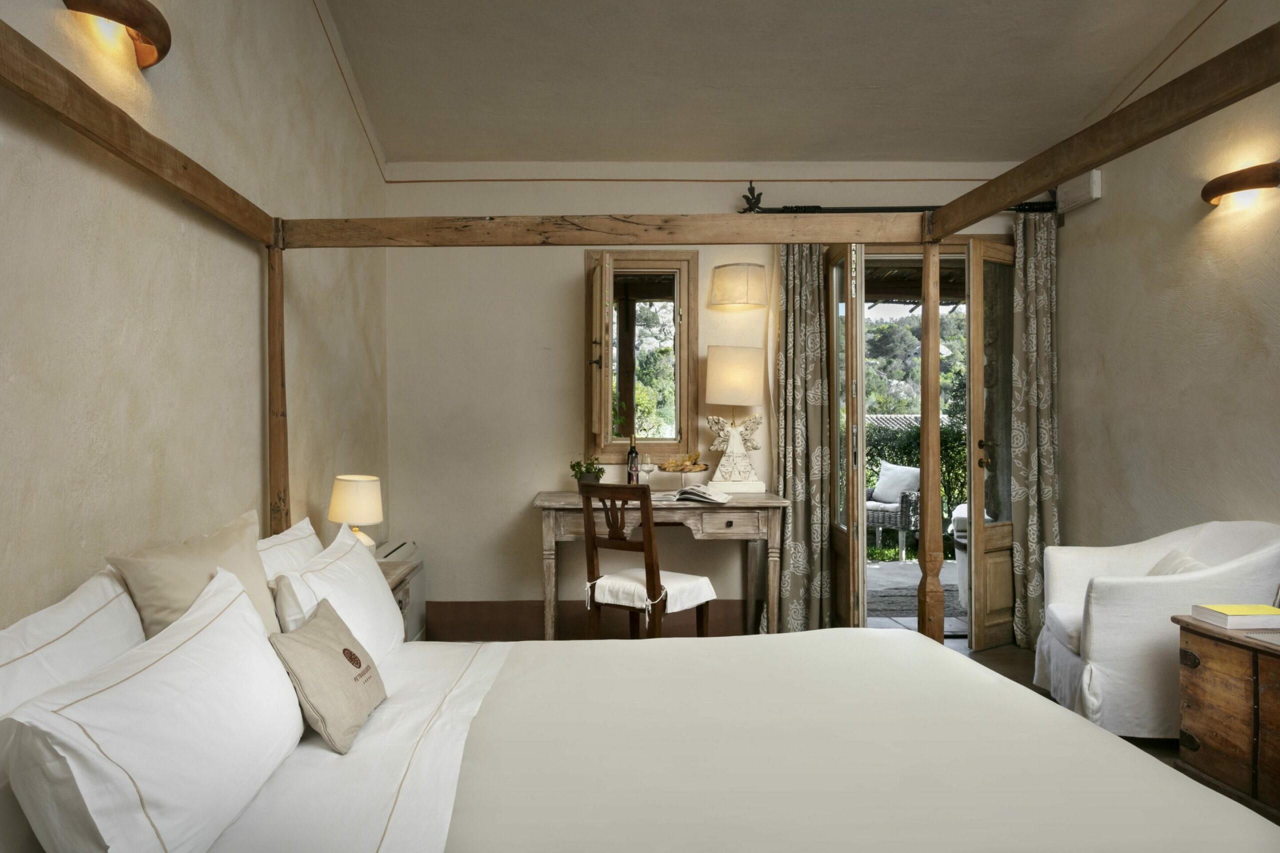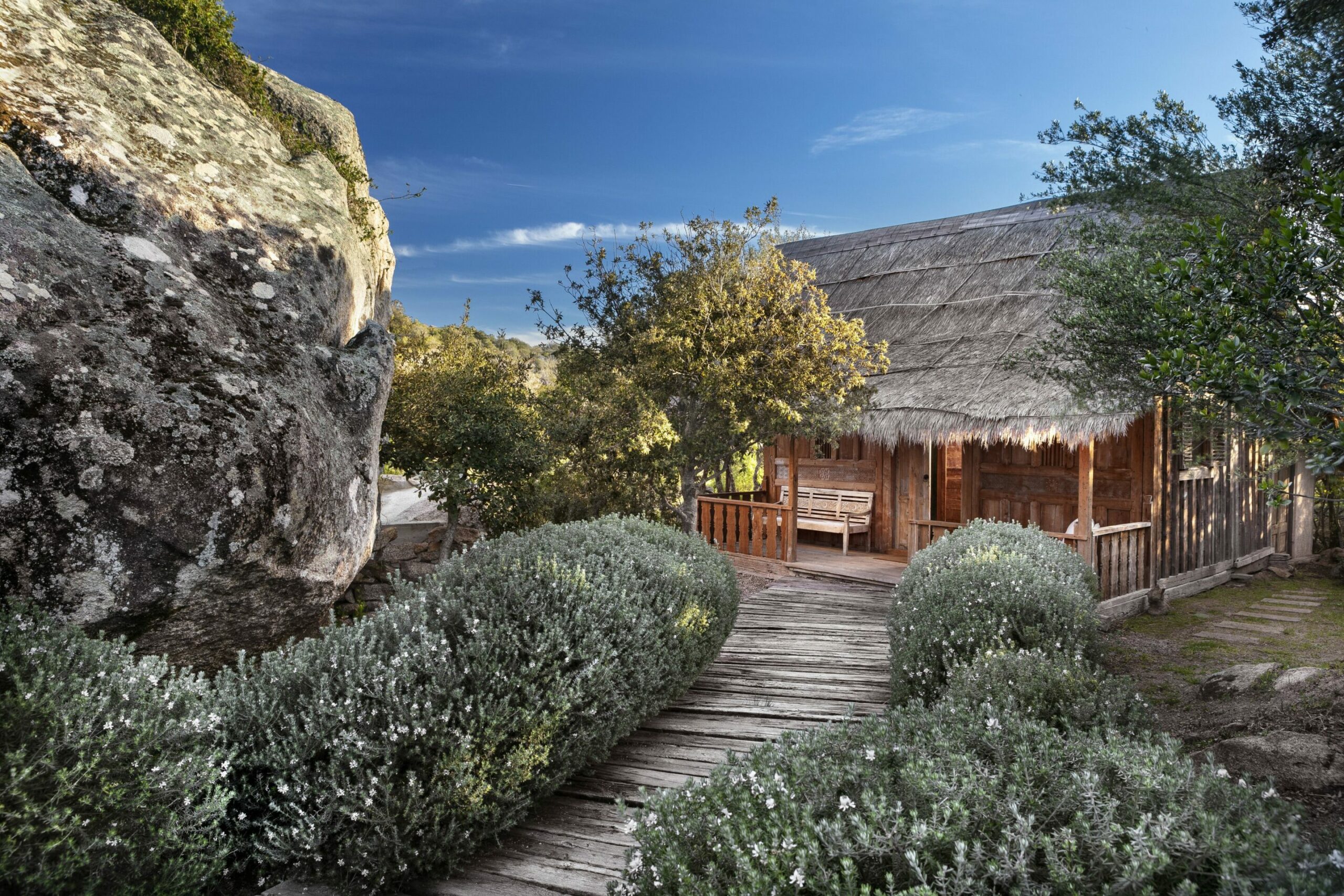 L’Hôtel Petra Segreta a été conçu dans le respect des traditions locales et du paysage environnant. Les bâtiments en pierre, inspirés des stazzi, ces anciennes fermes sardes, s’intègrent harmonieusement dans la nature. L’intérieur, décoré avec des matériaux nobles et des touches artisanales, reflète l’élégance rustique de la région.