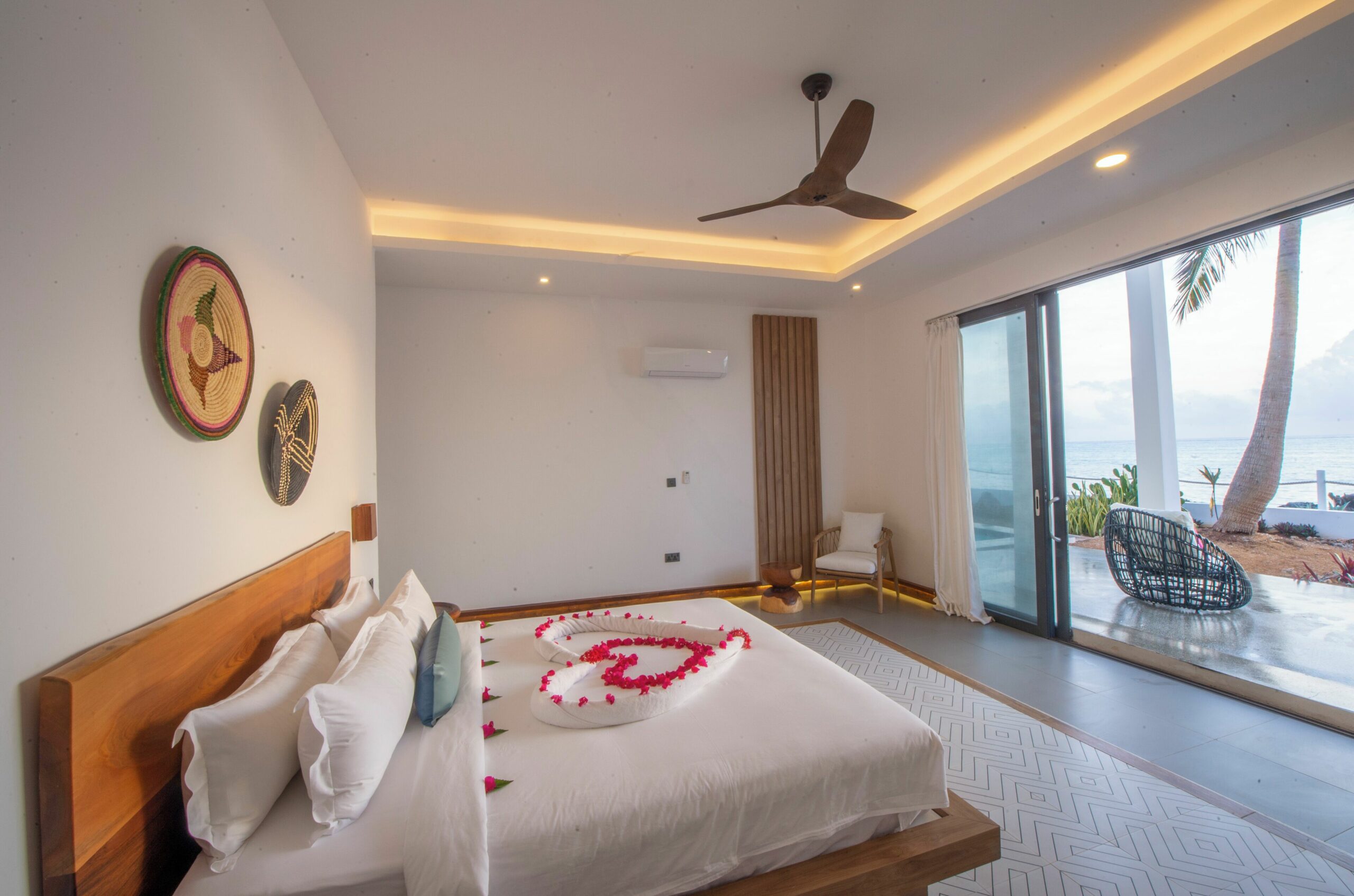 Le design de chaque villa est unique, empreint de caractère et profondément lié au lieu : les noms sont évocateurs comme Fisherman’s Cove (la villa présidentielle), The Dhow, Bougainvilla, Blue Lagoon, The Boardwalk, Lovers’ Bae, Land’s End, Endless Horizon, Tropical Nest, The Verandah ou encore Secluded Canopy. Chacune des villas bénéficie d’une vue magnifique, directe ou partielle sur l’océan indien ainsi que de terrasses spacieuses. On y trouve également parfois un ponton privé ou une situation en front de mer selon la villa, idéale pour savourer en toute quiétude ce panorama bleu idyllique.