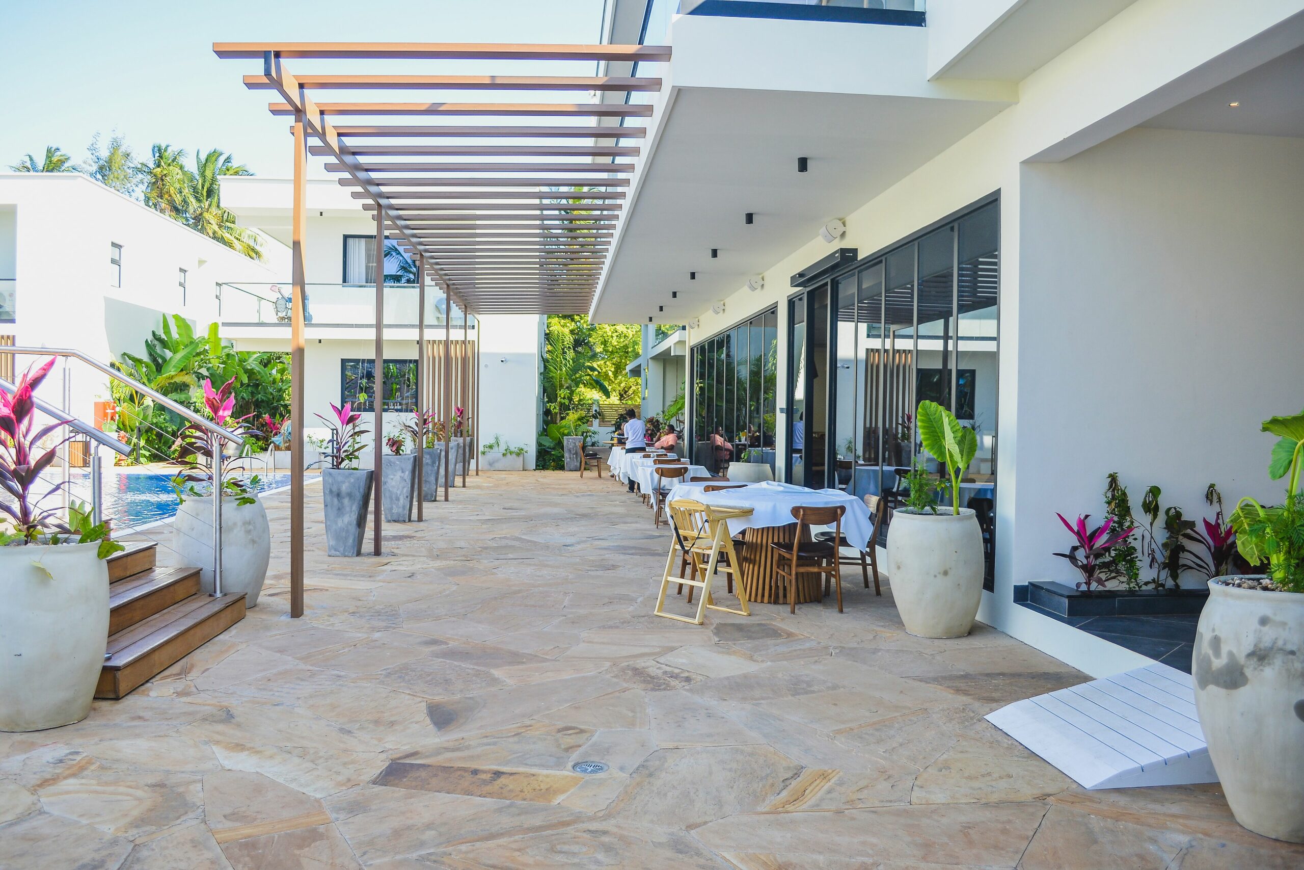 Le restaurant principal propose une carte inspirée des saveurs de l’océan Indien, mêlant produits locaux, poissons grillés frais, fruits de mer, épices authentiques, et présentations raffinées.